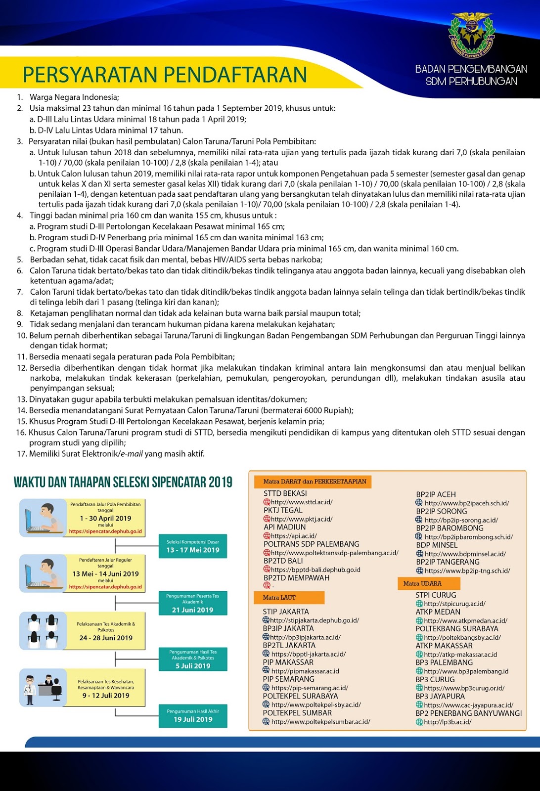 - Belum pernah diberhentikan sebagai Taruna/Taruni di lingkungan Badan Pengembangan SDM Perhubungan dan Perguruan Tinggi lainnya dengan tidak hormat.
